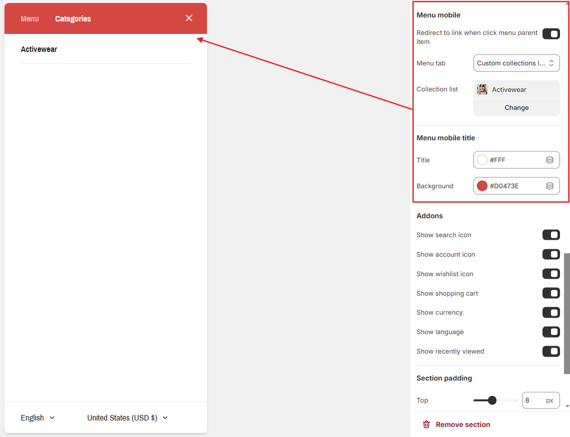 * **Mobile Menu Background Color**: "Set the background color of the mobile menu."