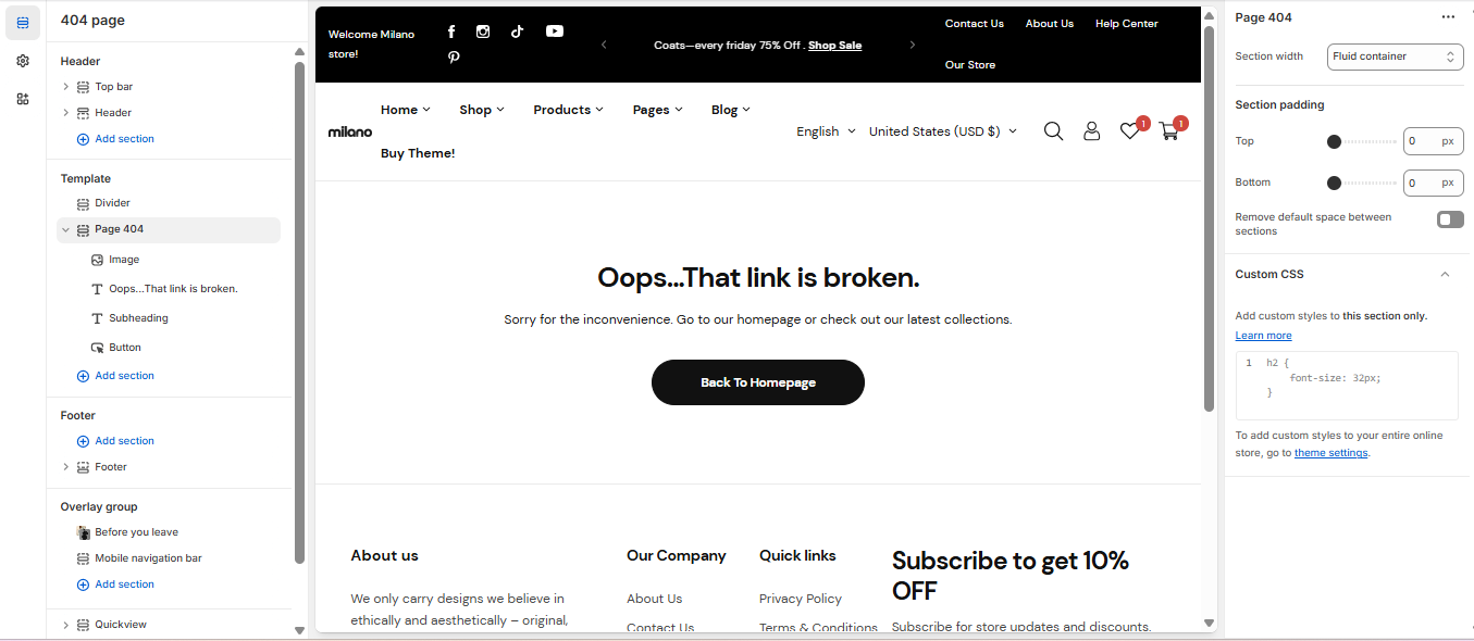 2. Select **Others**, then **404 page.**