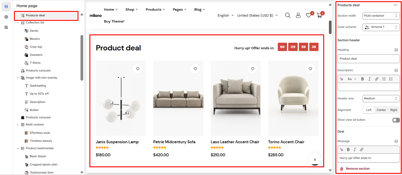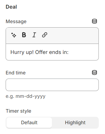 With the Message and Timer configured, you can then choose to display the deal countdown in your desired style.