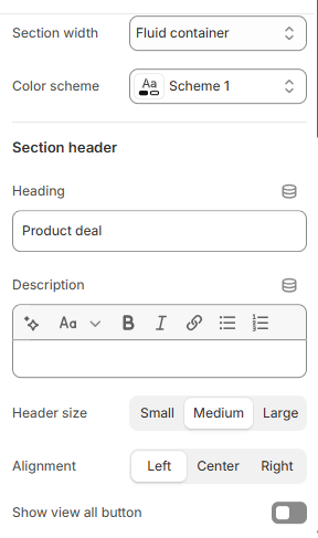 | Header size, alignment | Adjust the text alignment (left/center/right) along with the font size.                                                               |