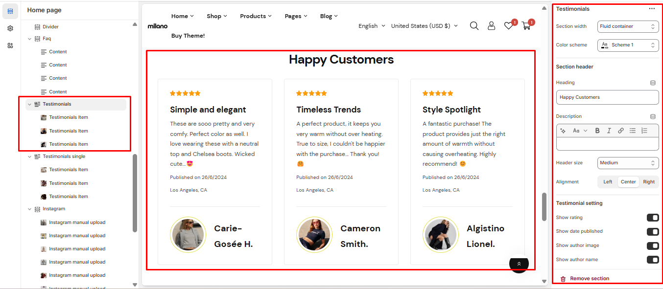 ## Testimonial setting